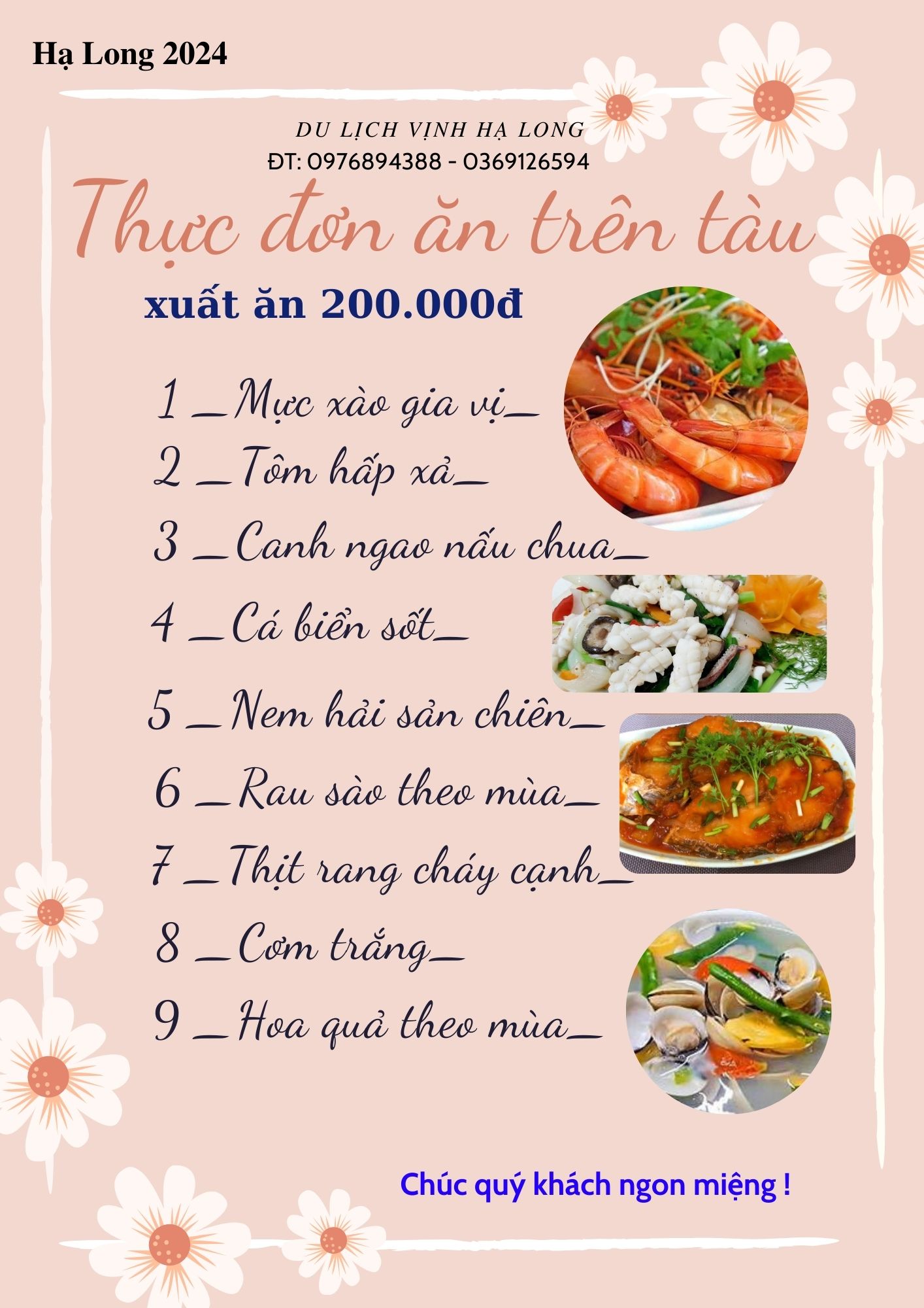 THỰC ĐƠN XUẤT ĂN: Cam kết chất lượng tốt, giá cả hợp lý, quý khách có thể gọi đặt trước theo yêu cầu giá ưu đãi! Liên hệ: 0976894388 em NgoanZalo 0369126594